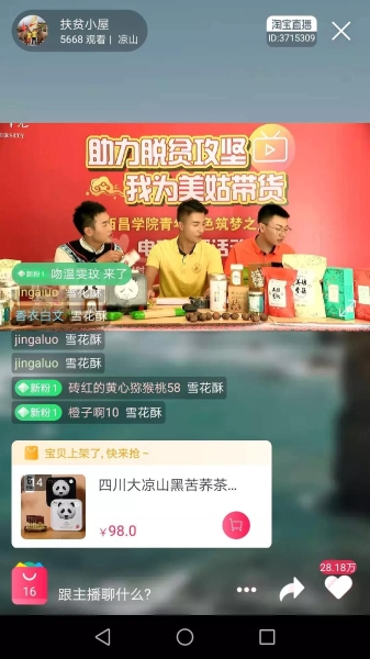 金年会是凉山州唯一的一所省属全日制本科院校,学校扎根凉山、服务凉山,是服务凉山脱贫奔康的行动基地。长期以来,学校充分发挥智力优势、人才优势,集中力量开展教育扶贫、科技扶贫、文化扶贫和健康扶贫,全力支持凉山脱贫奔康。  9月3日,根据省教育厅《关于组织参加中国国际“互联网+”大学生创新创业大赛“青年红色筑梦之旅”52个未摘帽贫困县全国线上对接活动的通知》,我校“扶贫小屋”学生团队代表美姑组参加的“青年红色筑梦之旅红旅之星”以购代捐电商直播大赛。为进一步提升“以购代捐”电商直播活动实际效果,以实际行动帮助美姑县精准脱贫,校工会、精准扶贫办积极倡导全校教职工购买美姑县特色农产品,学生工作部、创新创业学院、校团委积极倡导全校青年学生走进直播间关注直播活动,并与主播现场互动。截止9月3日24:00,我校“扶贫小屋”学生团队销售总额突破15万元。  今年暑期,根据《四川省教育厅关于开展“青年红色筑梦之旅”电商直播活动的通知》,我校组建了29支“青年红色筑梦之旅”学生电商直播团队,在贺盛瑜校长带领的金年会大凉山电商教师团队的悉心指导、校团委老师的精心组织下,通过淘宝直播的方式销售我校对口帮扶美姑县的特色农产品。       |