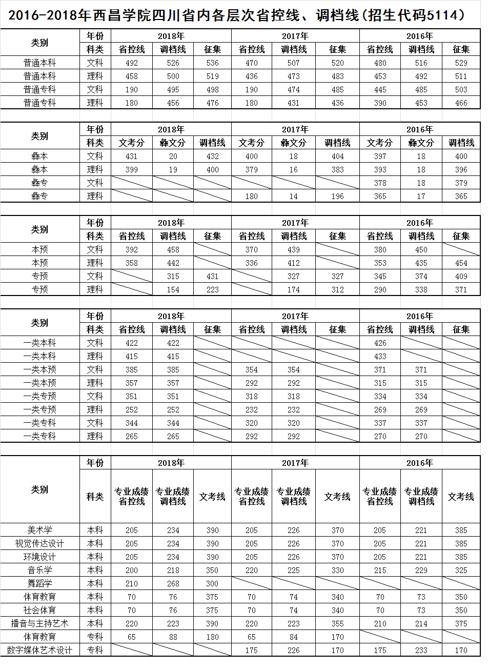 近三年金年会四川省内各层次省控线、调档线(招生代码5114)